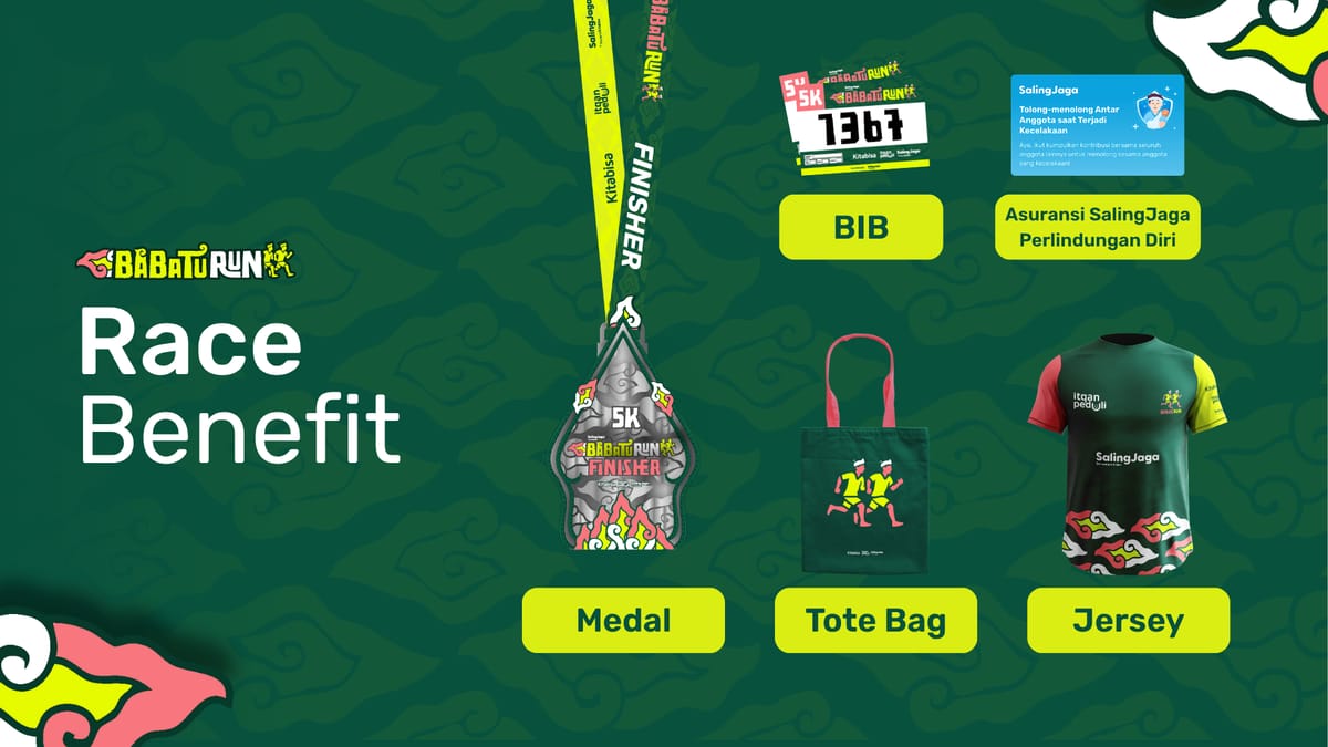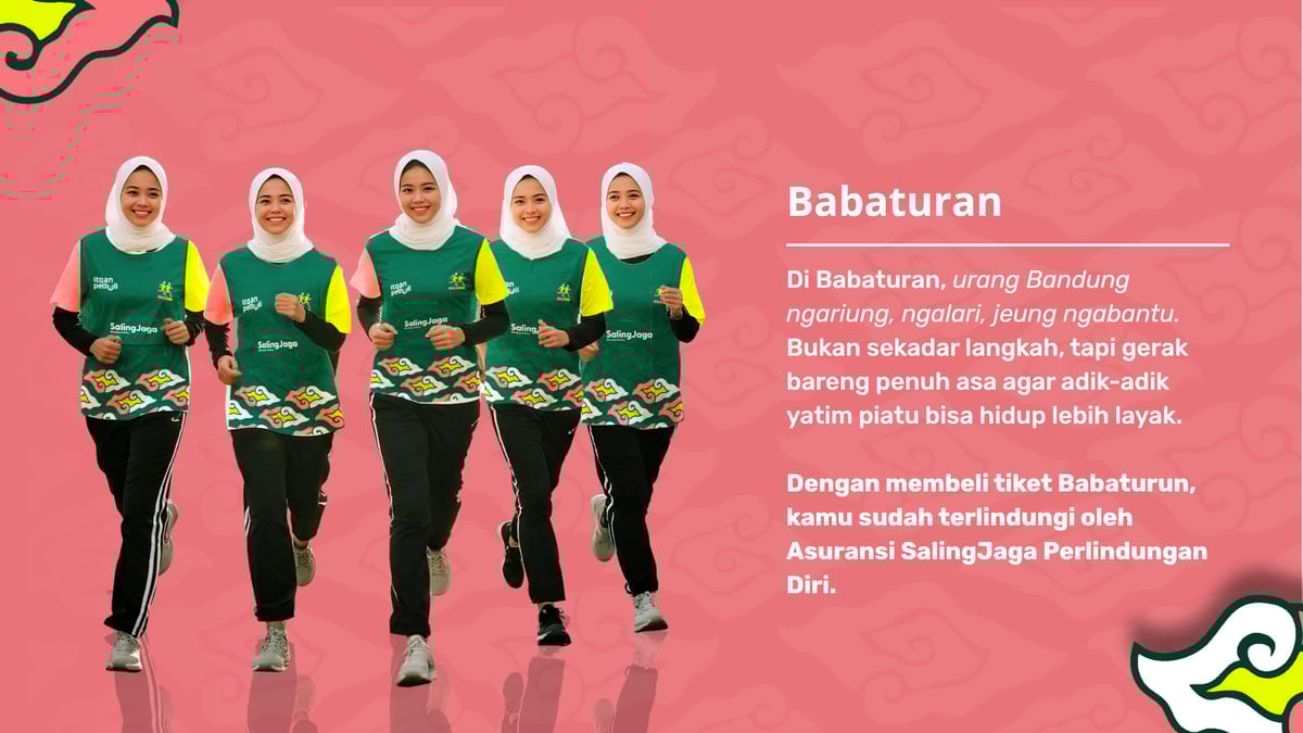 Babaturun akan jadi experience berlari yang berbeda, karena pelari tak hanya mengejar kepuasan capai garis finish dan dapat medali, tapi juga membantu adik yatim piatu agar memiliki kehidupan lebih baik.