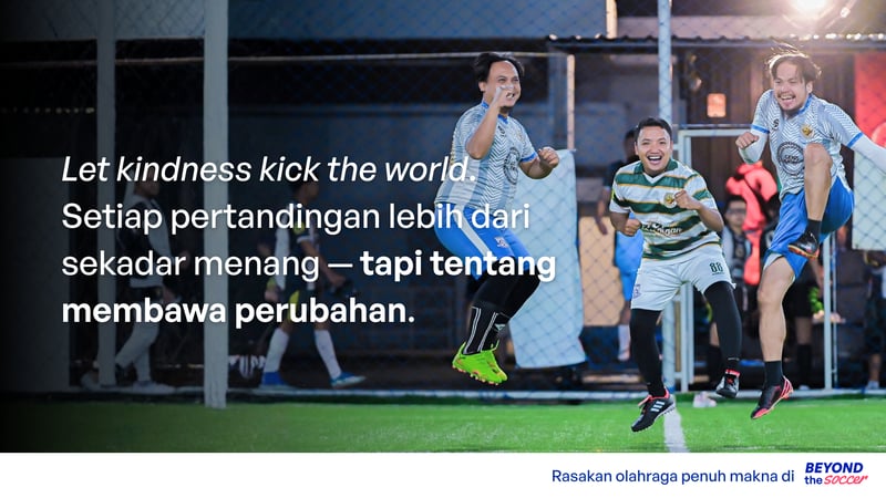 Sebentar lagi kita menyambut bulan suci Ramadan—bulan tentang kepedulian, harapan, dan berbagi. Namun di waktu yang sama, anak-anak penyintas banjir di Aceh masih berjuang untuk bangkit dan melanjutkan hidup mereka. Melalui semangat kebersamaan dan cinta lewat sepak bola, Beyond The Soccer mengajak kamu untuk ambil bagian dalam mini soccer charity Kick For Ramadan—sebuah gerakan sederhana yang mengubah satu tendangan bola menjadi harapan baru bagi mereka yang membutuhkan.