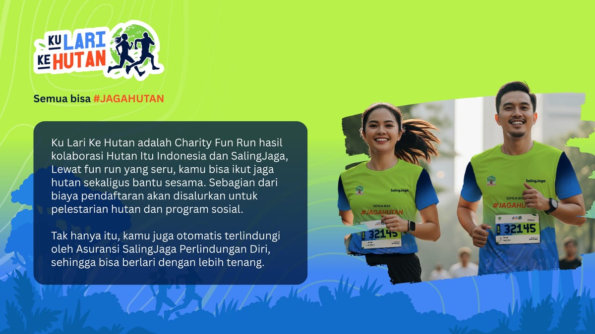 Hai runners, hutan sedang butuh kamu. Lewat Ku Lari ke Hutan, setiap langkah adalah aksi nyatamu untuk menjaga paru-paru bumi!