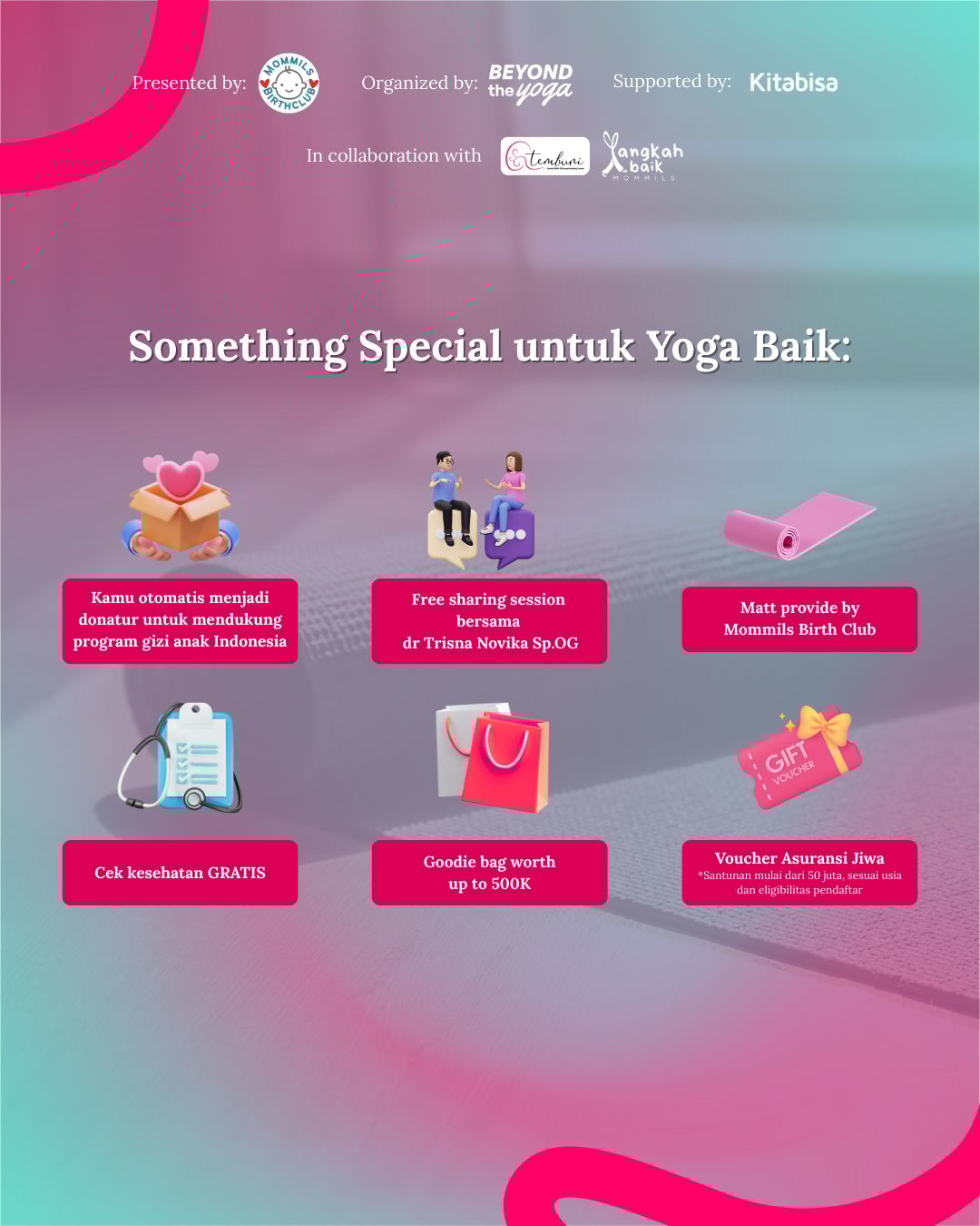 Yuk ikut Morning Kindness Flow - Prenatal Yoga Couple sekaligus mendukung program pemenuhan gizi untuk anak-anak Indonesia, bersama MommilsBirthClub dan SalingJaga by Kitabisa.