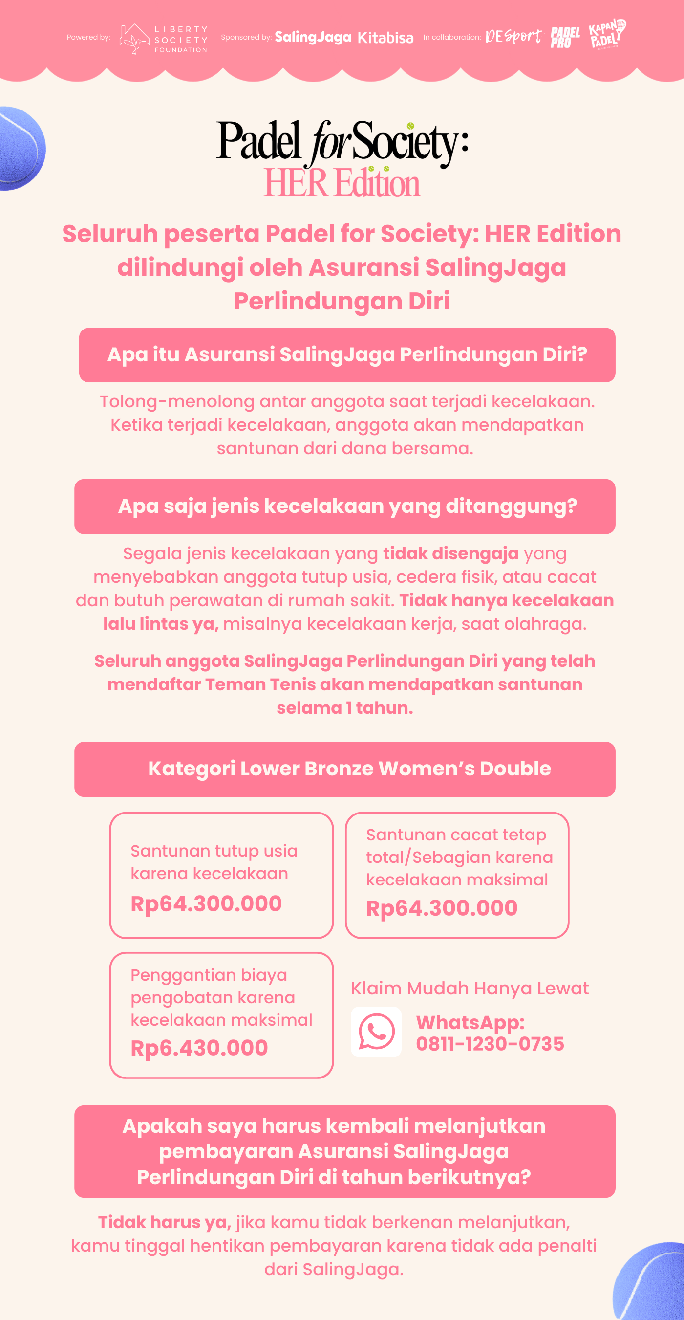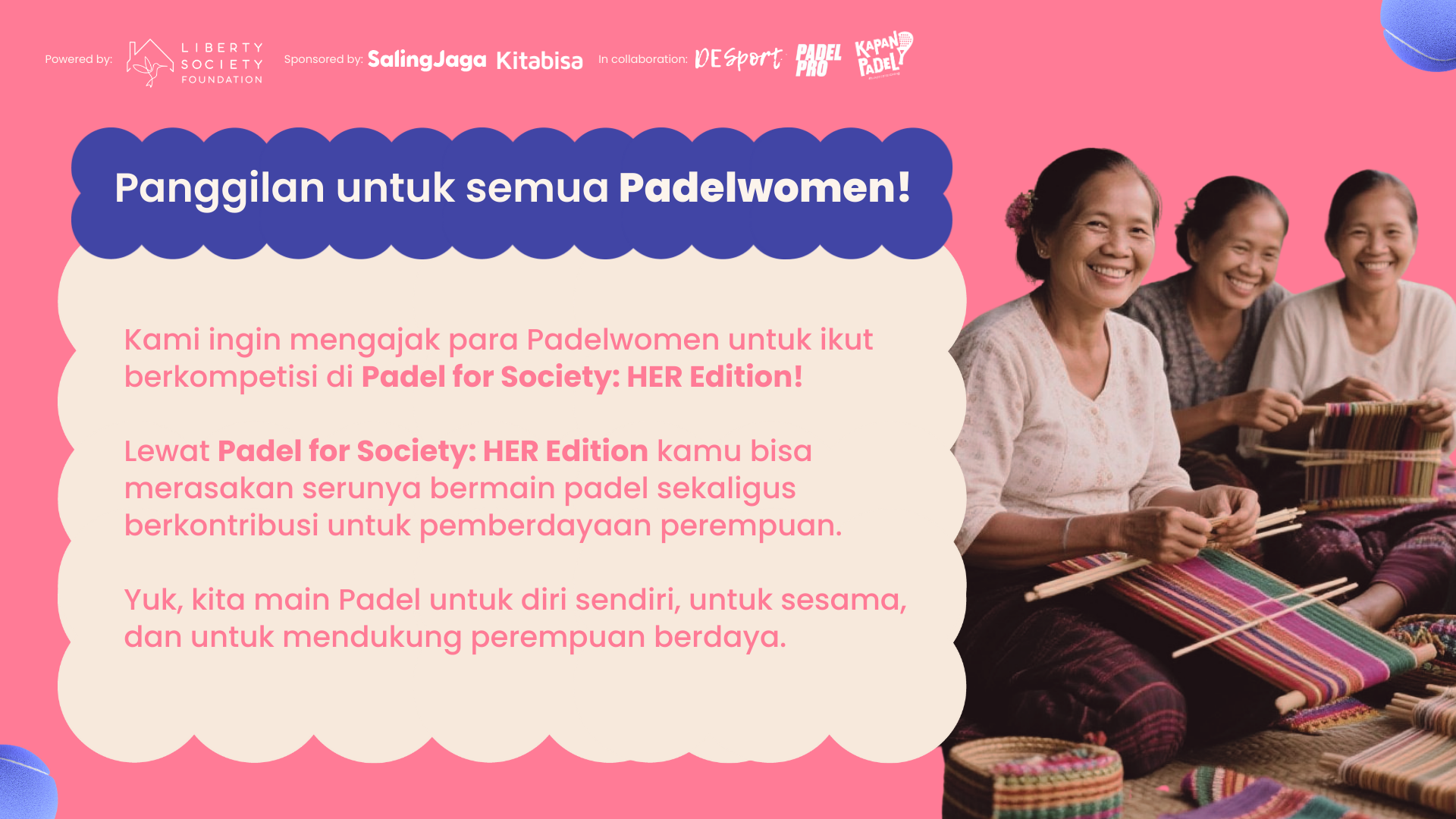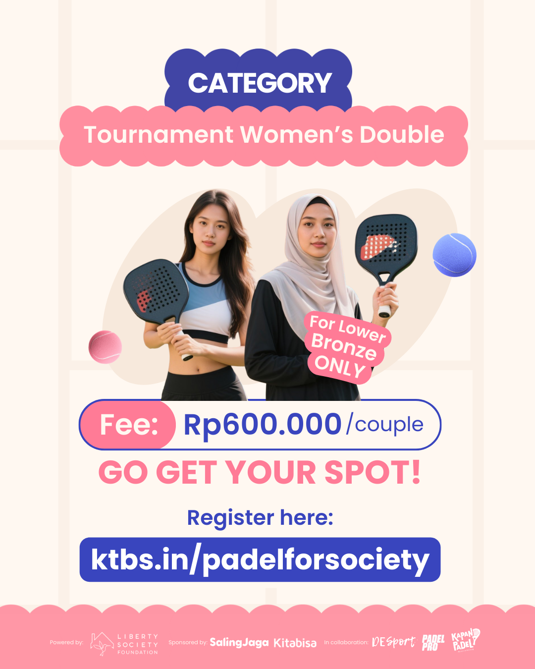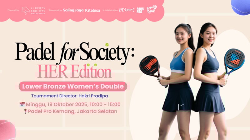 Rasakan serunya bermain padel, bertemu teman baru, sekaligus berkontribusi untuk pemberdayaan perempuan.