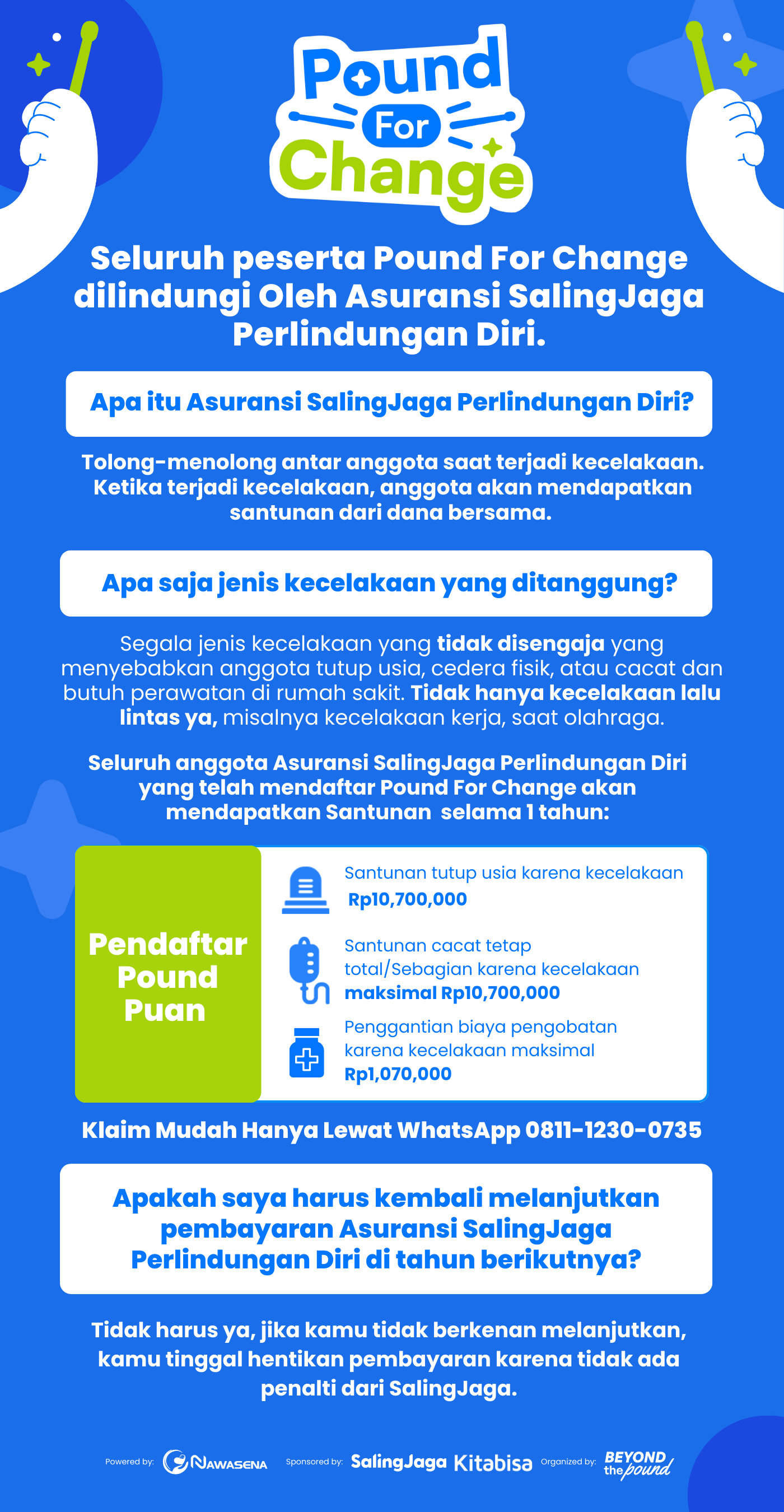 Dengan ikut serta di Pound For Change, kamu gak cuma olahraga bareng, tapi juga ikut membantu pendidikan dan merawat anak yatim di daerah Cirebon agar mereka bisa mendapat akses pendidikan serta hidup yang lebih layak.