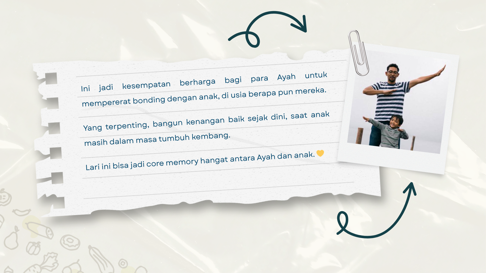 Pelari solo, pasangan, bahkan Ayah, Ibu dan anak diajak menikmati rute santai sambil bangun momen kecil tapi berarti buat saling dukung, saling semangatin, dan saling jaga.