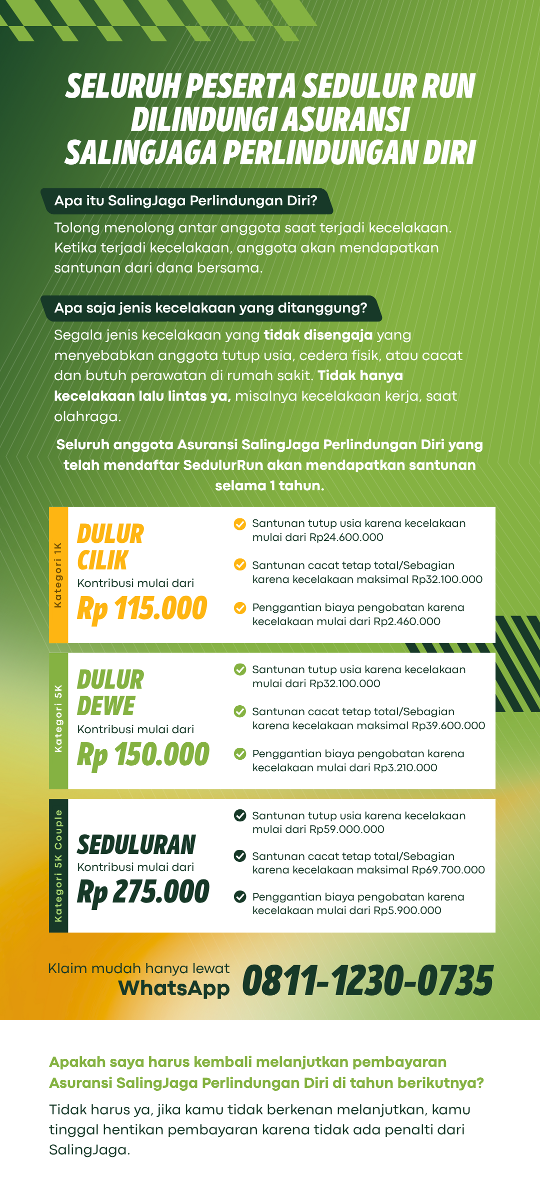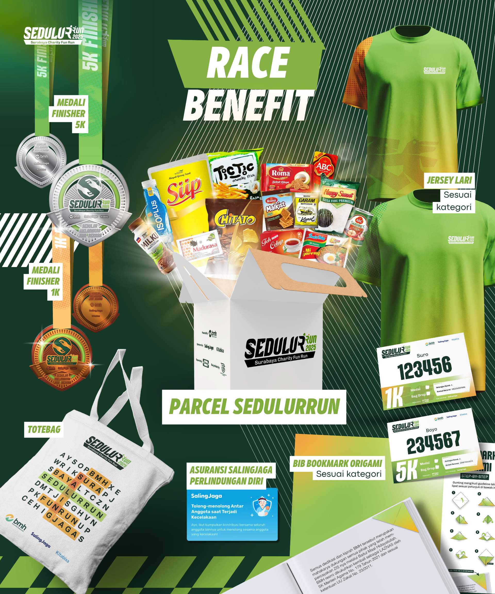 Nggak cuma lari, di SedulurRun setiap langkahmu dikonversikan jadi bantuan pendidikan bagi siswa santri dhuafa serta guru honorer. 2 (1).png2.6 MBDidukung Sakinah Mart, peserta SedulurRun akan mendapatkan goodie bag spesial senilai Rp500 ribu!3 (1).png4.72 MBDijamin seru, kamu nggak cuma bantu sesama tapi juga dilindungi Asuransi SalingJaga Perlindungan Diri. Lari aman tanpa khawatir akan risiko cedera & kecelakaan karena setiap peserta telah dilindungi selama 1 tahun!4 (1).png1.14 MBAjak keluarga dan temanmu lari bersama untuk pendidikan anak Indonesia di SedulurRun!