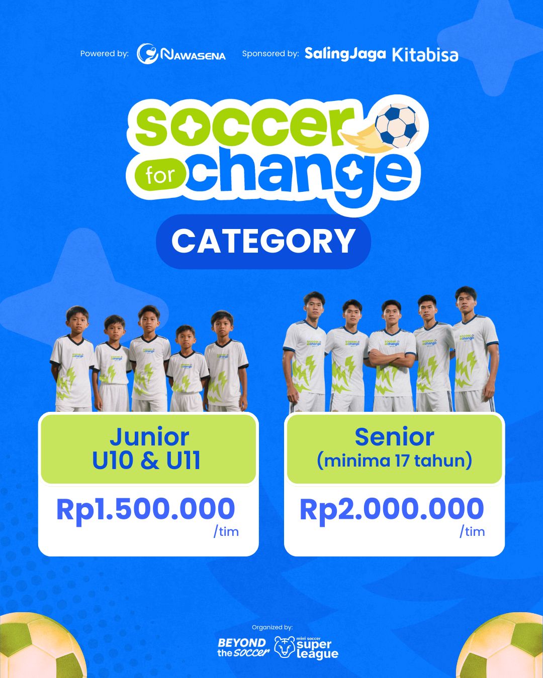 Kami mengundang kamu, untuk bergabung dalam Soccer For Change, sebuah kompetisi charity mini soccer yang seru dan penuh makna.