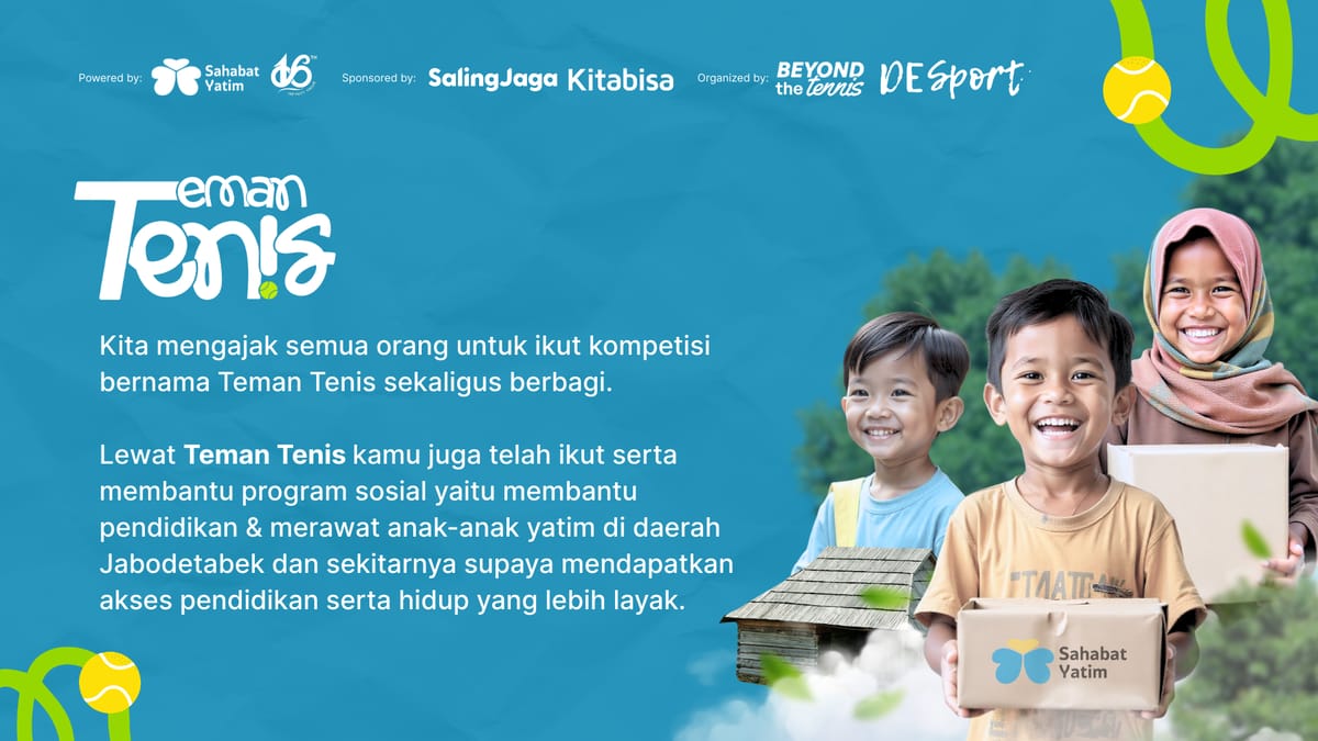 Dengan ikutan Teman Tenis, kamu membantu masa depan anak-anak yatim di Indonesia.